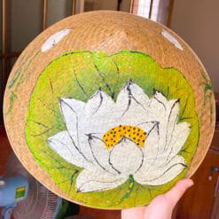 Trên nền vàng tươi tắn, sen tím than hiện lên như nét lặng giữa dòng cảm xúc. Nón cỏ bàng vàng họa tiết Sen tím than là biểu tượng cho sự cân bằng giữa rực rỡ và lắng đọng – một lựa chọn tinh tế cho người phụ nữ hiện đại yêu vẻ đẹp nghệ thuật.